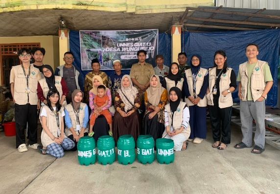 Mahasiswa Kuliah Kerja Nyata (KKN) UNNES GIAT 13 melaksanakan kegiatan pelatihan komposting limbah rumah tangga organik di Desa Wungurejo. Kegiatan ini bertujuan untuk meningkatkan kesadaran masyarakat dalam mengelola sampah organik menjadi pupuk kompos yang bermanfaat bagi lingkungan dan pertanian warga. Dalam pelatihan tersebut, para mahasiswa memperkenalkan teknik sederhana pembuatan kompos menggunakan bahan-bahan rumah tangga seperti sisa sayuran, daun kering, dan limbah dapur lainnya beserta menggunakan campuran EM4. Kegiatan ini juga diikuti oleh beberapa perangkat Desa Wungurejo yang antusias mempraktikkan langsung proses pembuatan kompos. Melalui kegiatan ini, diharapkan masyarakat dapat menerapkan pengelolaan sampah organik secara mandiri sehingga dapat mengurangi volume sampah rumah tangga sekaligus mendukung program desa ramah lingkungan.
